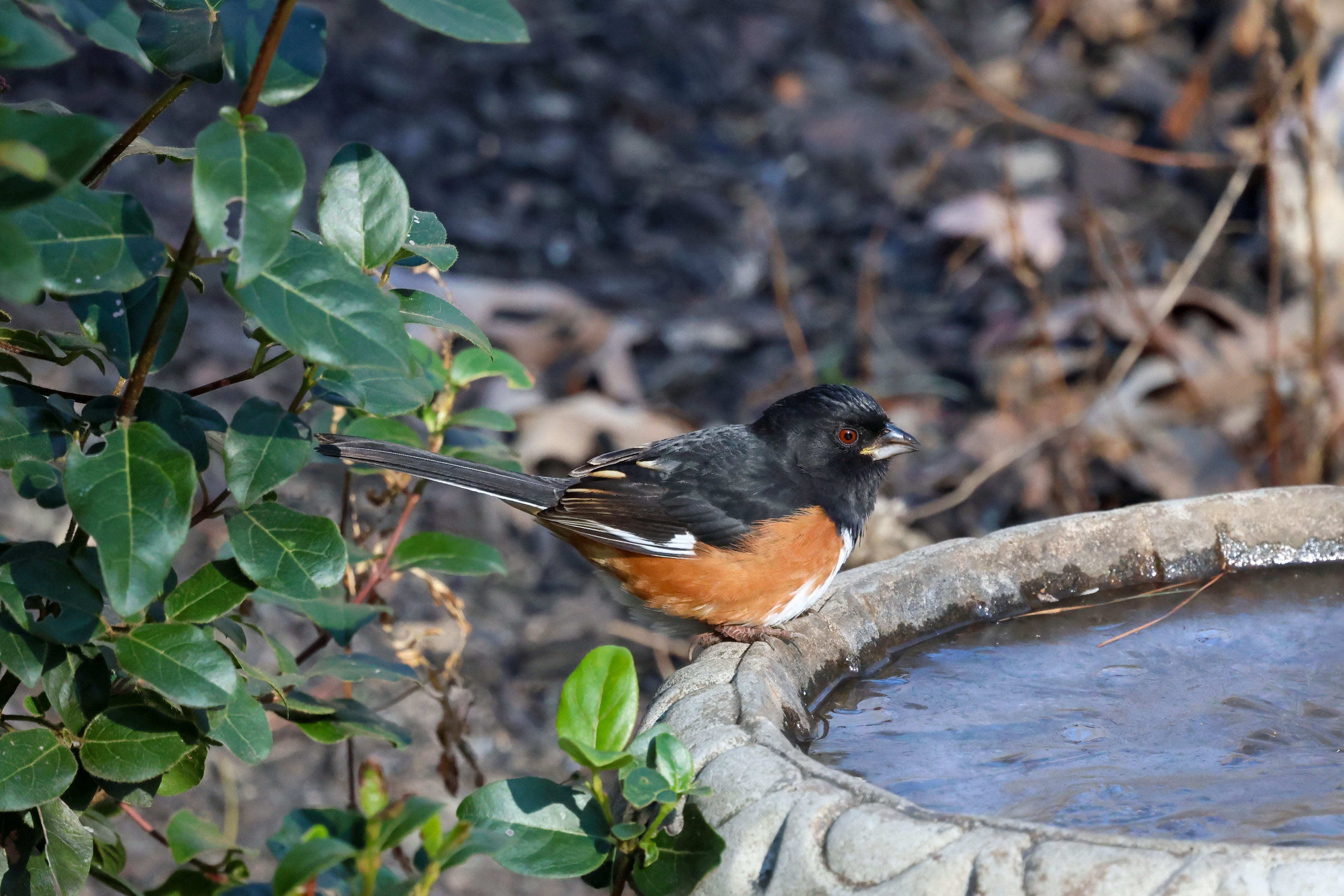 He was quite interested in the goldfinches and purple finches that would fly past on their way to the seed feeders and watched them intently. He was fed two of his meals "al fresco" in the gazebo, mouth wide open on his own for several of his portions.